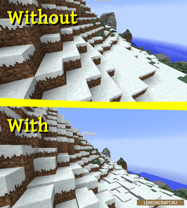 Мод на снег Immersive Snowgen прибавит реалистичности процессу появления снега в игре. После установки мода, снег не будет лежать равномерным пластом, он будет наслаиваться сам на себя, тем самым увеличивая высоту снежного покрова. Кроме этого снег будет двух видов, один очень скользкий, а второй хрупкий и пушистый, в который вы будете проваливаться.